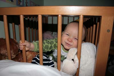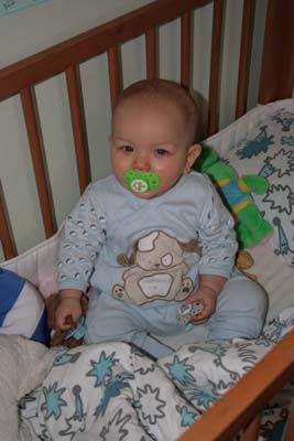 Jag sitter i sängen, man kan ju inte klara sig med bara en napp! |