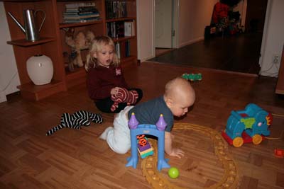 Jag och Amanda leker med mitt tåg... |