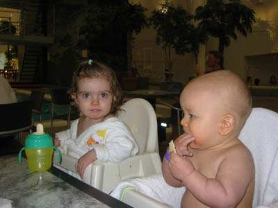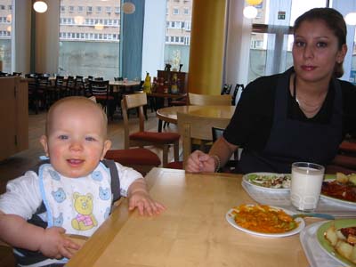 Jag och Emilia väntar på lunch... |